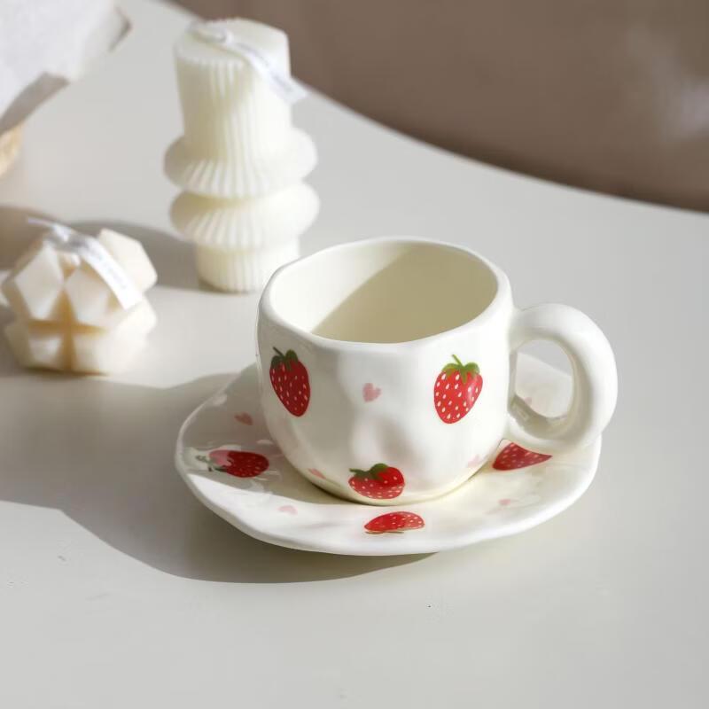 OLOEY Irregular Underglaze Ceramic Strawberry Travel Mug