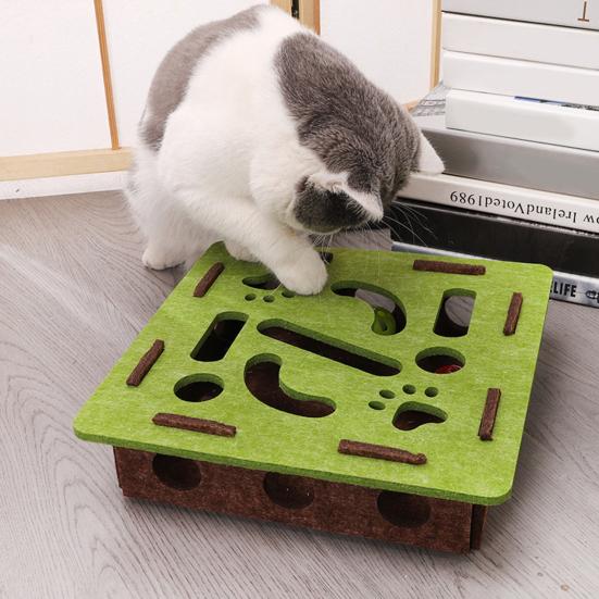 Cat Scratch Enrichment Box Interactive Felt Scratch Toy Fun Maze Box Cat Puzzle Toy with Bell Balls for Indoor Cats Scratching Mental Stimulation