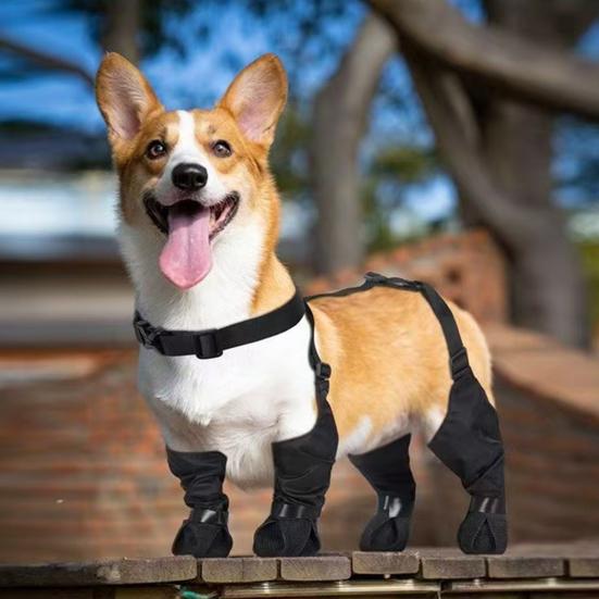 Protect your dog's paws with our innovative connected dog shoes, designed to stay securely in place and never get lost. Crafted from multi-layer waterproof composite fabric with leak-proof stitching, these shoes offer all-weather protection, keeping paws warm and dry in rain, snow, or cold conditions. The adjustable elastic webbing and hook-and-loop fasteners ensure a snug fit for dogs of various sizes, especially short-legged breeds like Corgis, preventing slipping or shifting during walks.