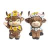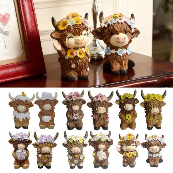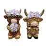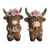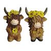 This highland cow statue features a charming finish and an ideal size, making it a captivating addition to any space. Crafted from durable resin, this ornament ensures long-lasting quality and resilience. The intricately decorated head and body adorned with flowers add an artistic touch that enhances rustic home decor.