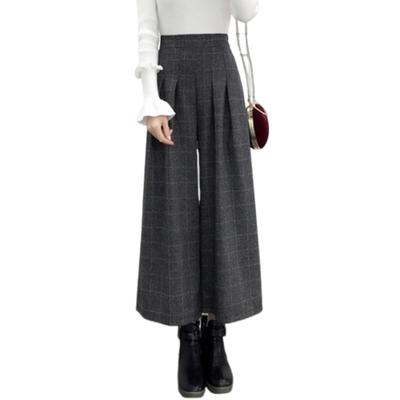 RoyzTocz Gaucho Checkered Long Plus Loose Women's Wide-Leg Pants, Pattern, High-Waisted Trousers, Pants, Sizes, Casual, Stylish, Leg-Lengthening,