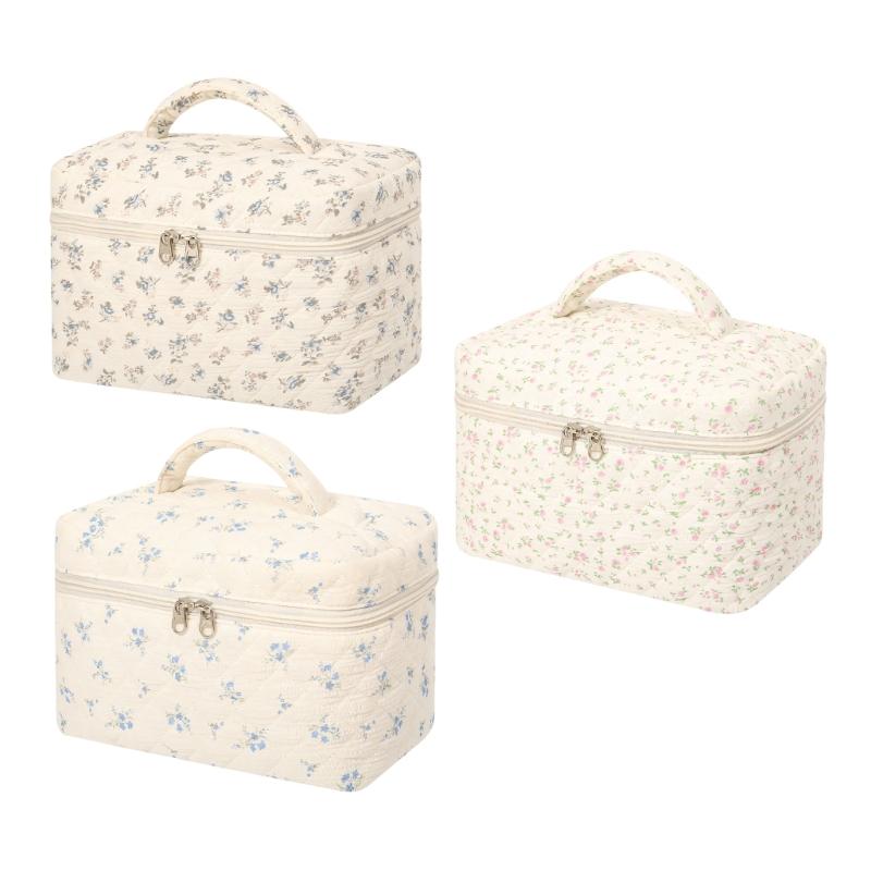 Elegant Small Florals Designs Cosmetic Pouch Soft Polyester Fabric Spacious Makeup Organiser For Daily Use