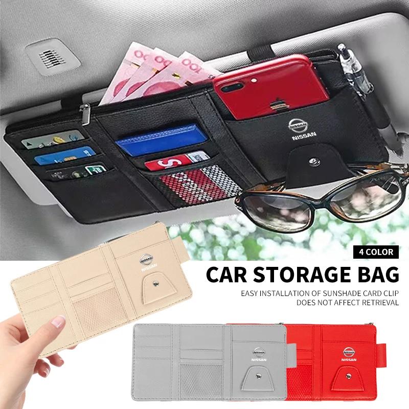 New Car Leather Sun Visor Storage Clip Light Shield Storage Bag For Nissan Nismo Tiida Teana Skyline Juke X-trail Almera Qashqai