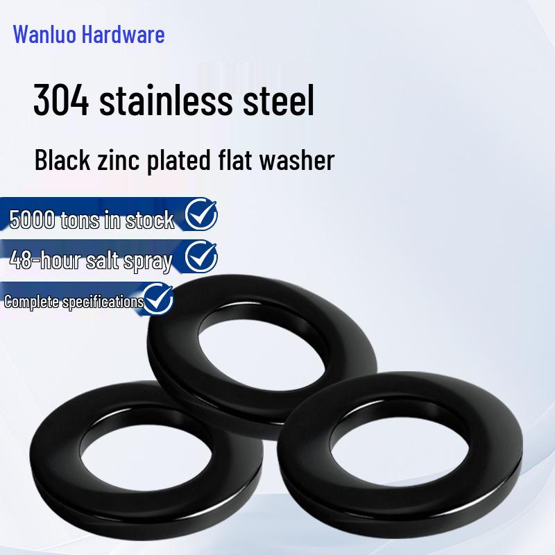 Black Zinc Plated 304 Stainless Steel Flat Washer, M2-M20, GB97 Standard.