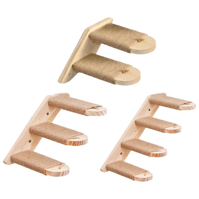 Natural Wood Cats Climbing Ladder Wall Mounted Space Efficient Design Activity Toy For Small Home And Pet Entertainment