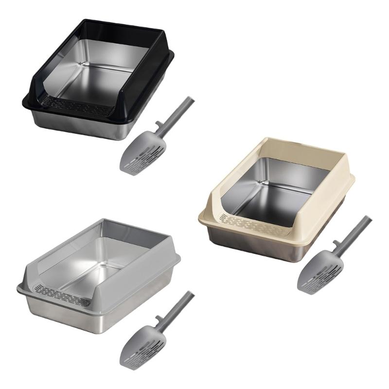 Large Half Enclosed Cats Litter Pan Stainless Steel AntiSplash Design Ventilation Litter Tray for Indoor Outdoor Cats