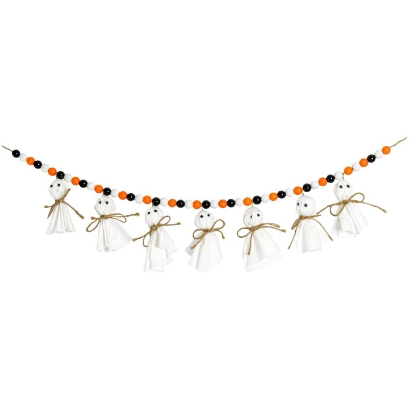 Handmade Halloween Wooden Specter Decoration With Natural Rope Beads For Indoor Wall Decoration Party Supplies