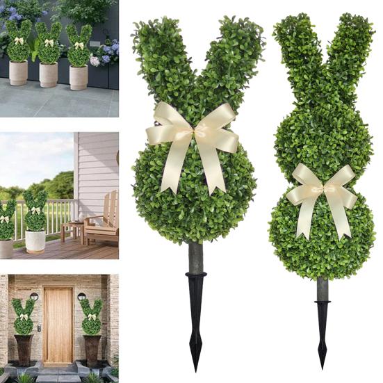 Add a touch of whimsical charm to your home or garden with this Rabbit Artificial Tree. Crafted from high-quality plastic, this lifelike faux plant features a cute cartoon rabbit shape adorned with a ribbon bow, making it an adorable Easter decoration or year-round accent.