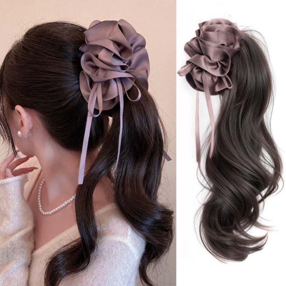 Synthetic Ribbon Banana Clip Ponytail Pleated Bow Pony Tail Hair piece for Women