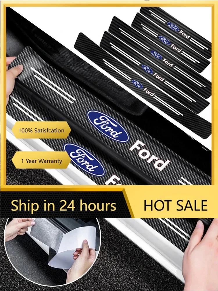 Car Sticker For Ford Car Door Sill Anti-scratch Stickers Carbon Microfiber Sticker For Ford Edge Explorer Transit Ranger Kuga MK