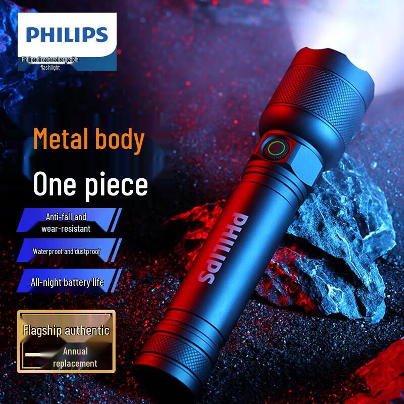 Experience superior illumination with the Philips Powerful Rechargeable LED Flashlight. Crafted from durable aluminum alloy and featuring a robust IPX5 waterproof rating, this portable flashlight is designed for reliability in any outdoor, home, or emergency situation. With a convenient USB-C charging port, long-lasting battery, and various models offering exceptional brightness and long-range visibility.