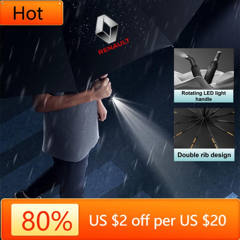 Interior Stickers Fully Automatic Folding Umbrella with UV Blocking Sun Double Bones LED Parasol For Renault Grand Scenic 4 XMOD