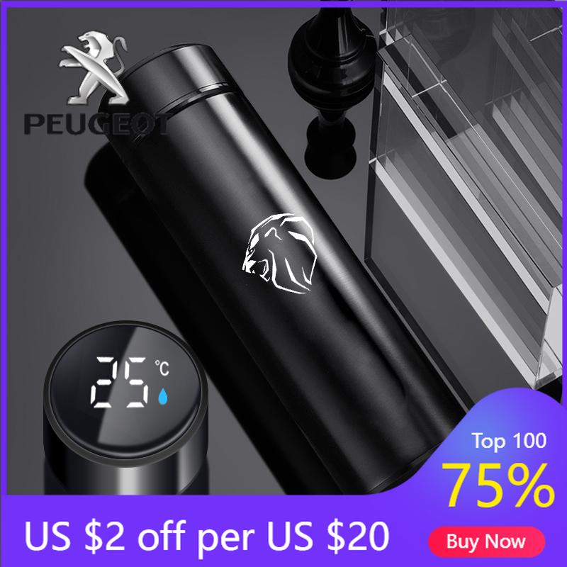 2026 Hot Car Sticker 500ml Portable Car Smart Thermos Bottle Temperature Display Cup For Peugeot 407 508 2008 5008 307 308 3008