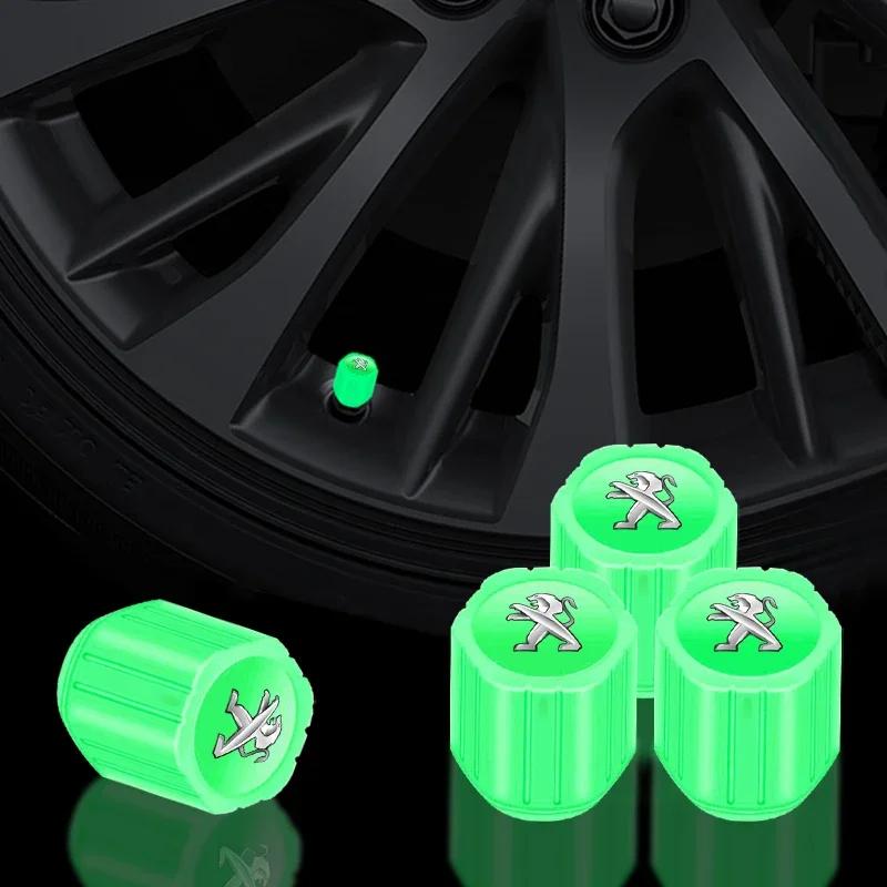 4Pcs Luminous Car Tire Valve Caps Badge Emblem Accessories For Peugeot 206 308 307 208 207 3008 2008 508 407 301 406 408 607