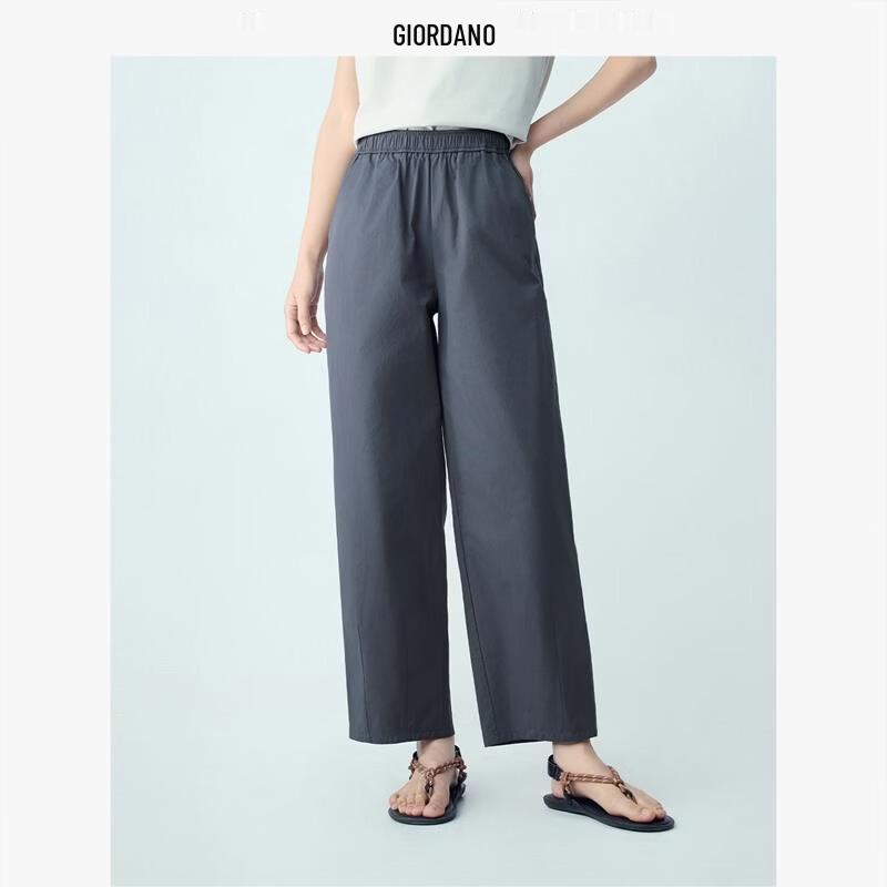 Giordano Women's Elastic Waist Pleated Pure Cotton Cropped Pants