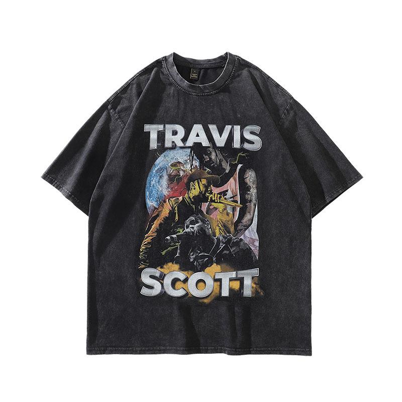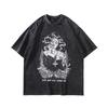 American Retro Hiphop Direct Injection Printing Heavy Vintage Washed Old Hip Hop Trendy Brand Short-Sleeved T-Shirt
