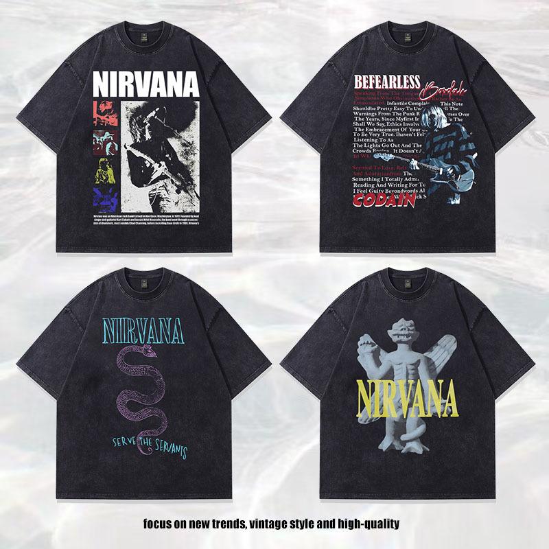 High Street Vintage Washed Vintage T-Shirt American Vintage Band Print Large Version Short Sleeve T-Shirt Men And Women