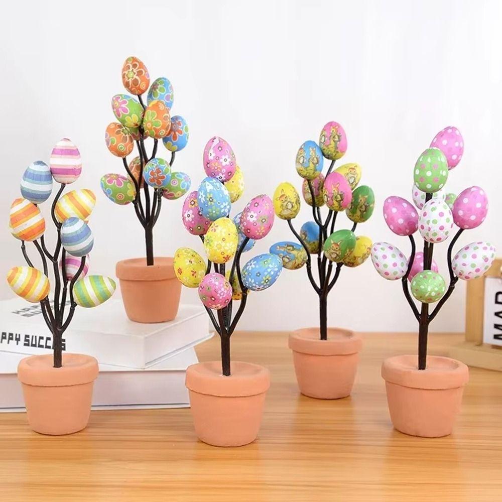 Colorful Easter Egg Bonsai Simulated Easter Potted Plant Cute Eggs Tree Branch for Home