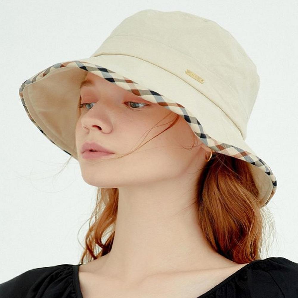 The DBHE2E123 [DAKS HAT] Ivory Check-Patterned Cotton-Linen Blend Bucket Hat features a natural mélange color and comfortable fit. The brim is accented with a check pattern, adding a touch of luxury, while the linen blend material provides a soft and light touch. This item is ideal for summer season use.