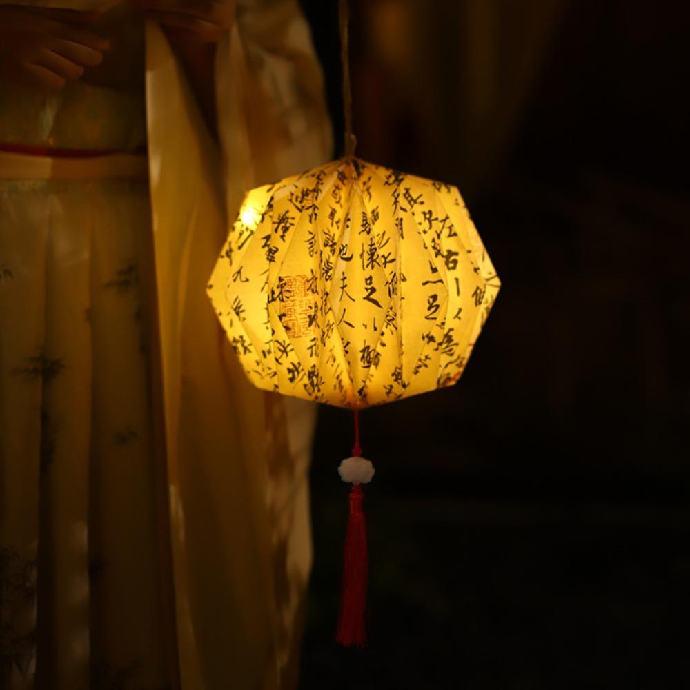 Portable Ancient Poetry Paper Lantern Traditional Calligraphy Lotus Lantern Mid-Autumn Festival