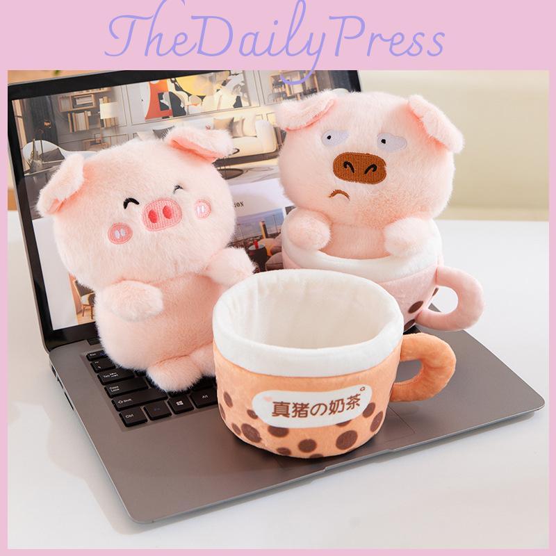Pig Plush Toy With Milk Tea Cup Shape For Kids Gift And Home Decor