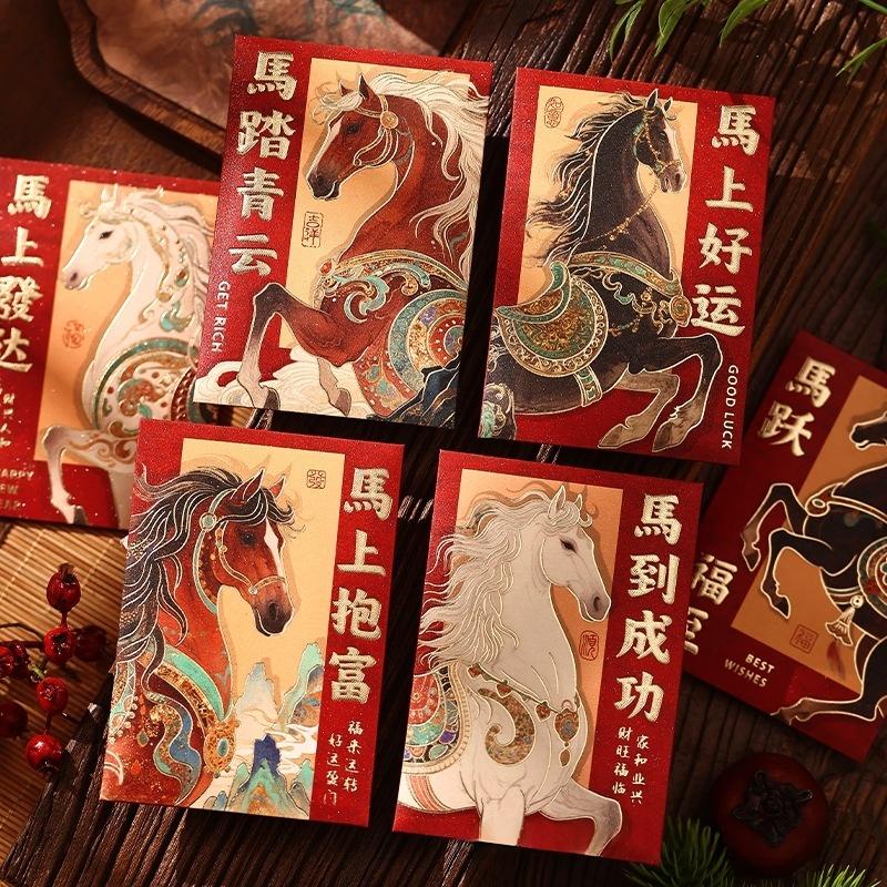 6Pcs 2026 Horse Year Cartoon Creative Red Envelopes Cute Pony Pattern Lucky Money Bag New Year Blessing Red Packet