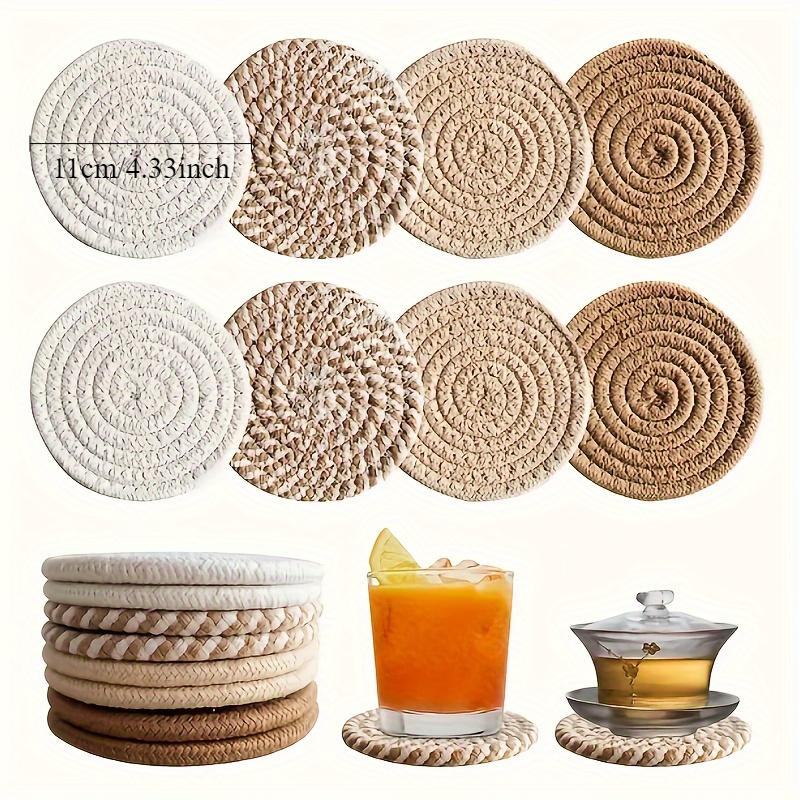 8Pcs absorbent coaster set, simple woven coaster, high-grade polyester fiber with non-woven backing, suitable for all kinds of cups