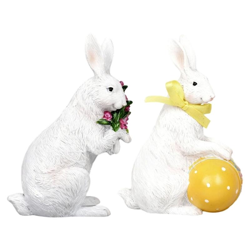 Resin Bunnies Figurine Easter Rabbit Statue Indoor Easter Decoration Modern Art Spring Home Decors,Bunnies Sculpture