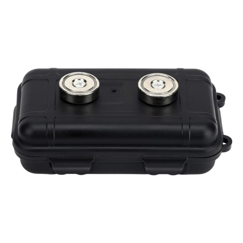 This innovative magnetic storage box offer double installation, featuring a detachable shackle for door handle and strong magnetic attachment for secure undercarriage mounting on flat surfaces.