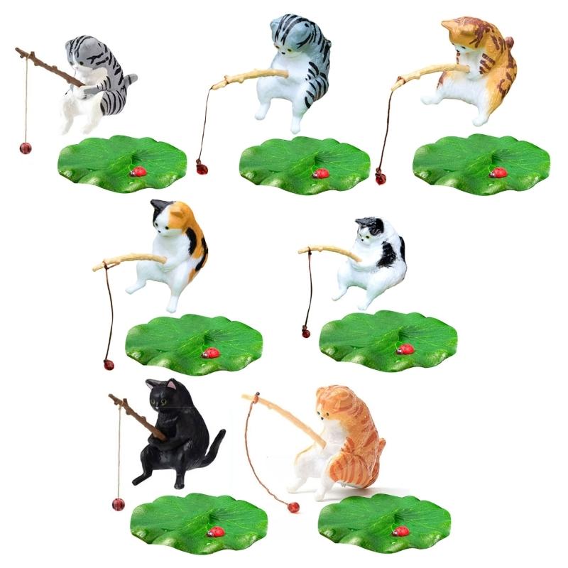 Funny Fishing Kitten for Aquarium Glass WallDecoration Landscaping Cute Kitten FishTank Cartoon Decors Statue Resin