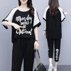 Women's Summer Loose-Fit Flattering Set: Short-Sleeve T-Shirt + Capri Pants Comfortable Casual Two-Piece Set