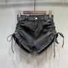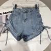 Rahat Skinny Moda ve Çok Yönlü Tasarım Anlayışı Denim Şort Kadın Yaz Yüksek Bel Lastikli Slim Düz İpli A Kesim Pantolon