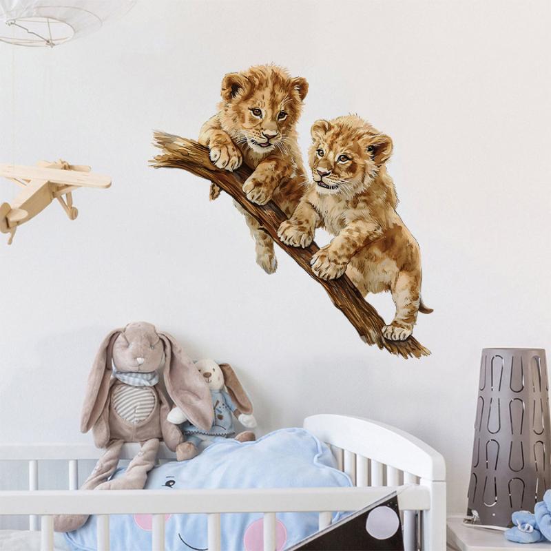 Cartoon Lion Wall Stickers Removable Peel & Stick For Kids Room Nursery Playroom Cute Animal Theme Decor