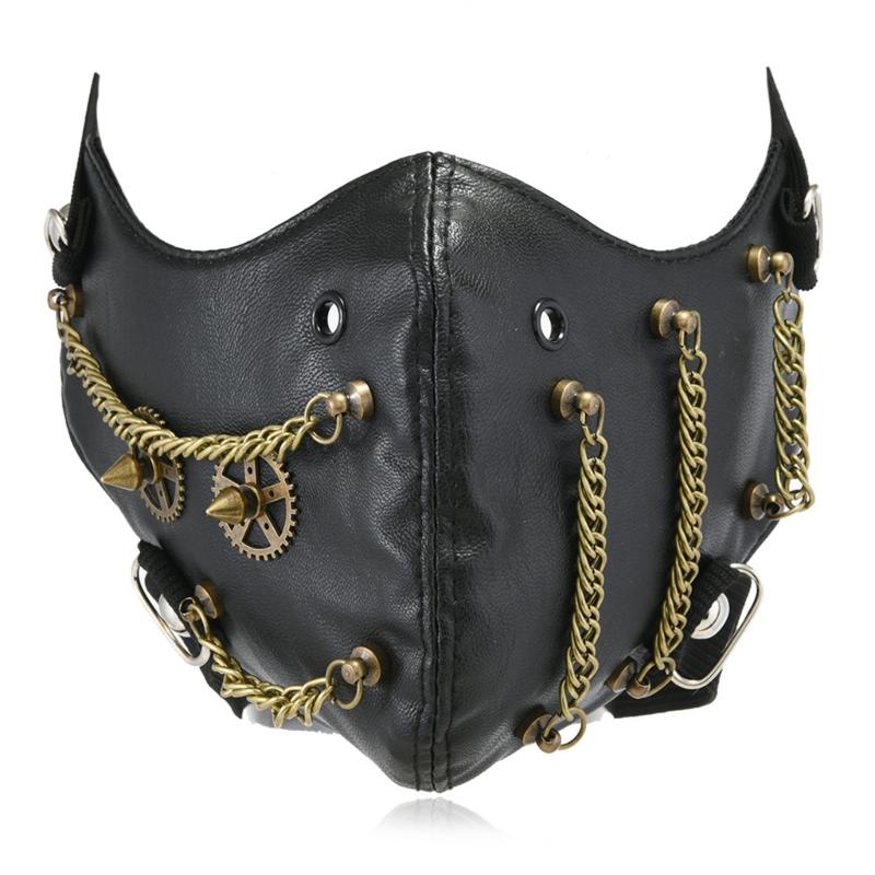 Rivet Chain Embellished PU Leather Face Mask Punk Gothic Cosplay Props For Theater Parties Halloween Costume Event