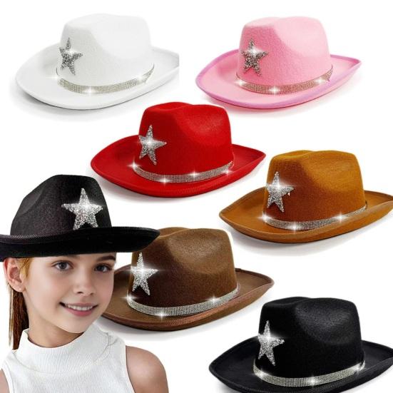 This kids hat offers a comfortable, lightweight fit perfect for extended wear. Designed with a sparkling rhinestone five-pointed star pattern, it quickly captures attention, making it ideal for cowboy or denim-themed parties, carnivals, dress-up events, and Halloween celebrations.