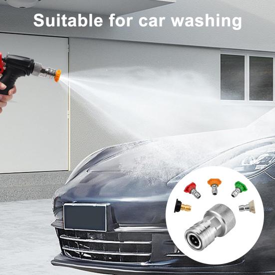 The adapter allows quick, tool-free installation, converting your standard 3/4 inch garden hose thread (GHT) to a 1/4 inch mini power washer connector effortlessly. Ideal for versatile cleaning tasks such as car washing, patio cleaning, and general household use, this universal adapter enhances your cleaning efficiency with reliable compatibility and robust construction.
