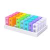 This colorful monthly pill organizer is designed for convenient medication management, featuring 32 bright, translucent compartments to keep your AM and PM pills sorted for the entire month. Its removable lids slide open smoothly for quick access, making it ideal for home use, travel, or business trips. The detachable AM/PM sections simplify refilling and help prevent missed doses.