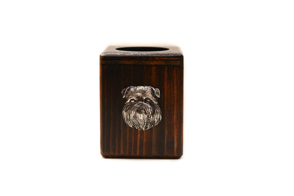 Griffon Bruxellois, Brussels Griffon - wooden candle holder with a dog, a unique souvenir after losing a dog, a handicraft from the Art-Dog brand