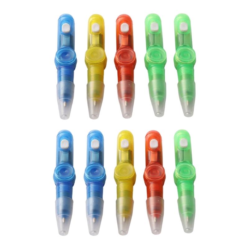 10PCS Rotating Ballpoint Pen With LED Light For Stress Relieving And Night Writing Perfect For Students And Workers