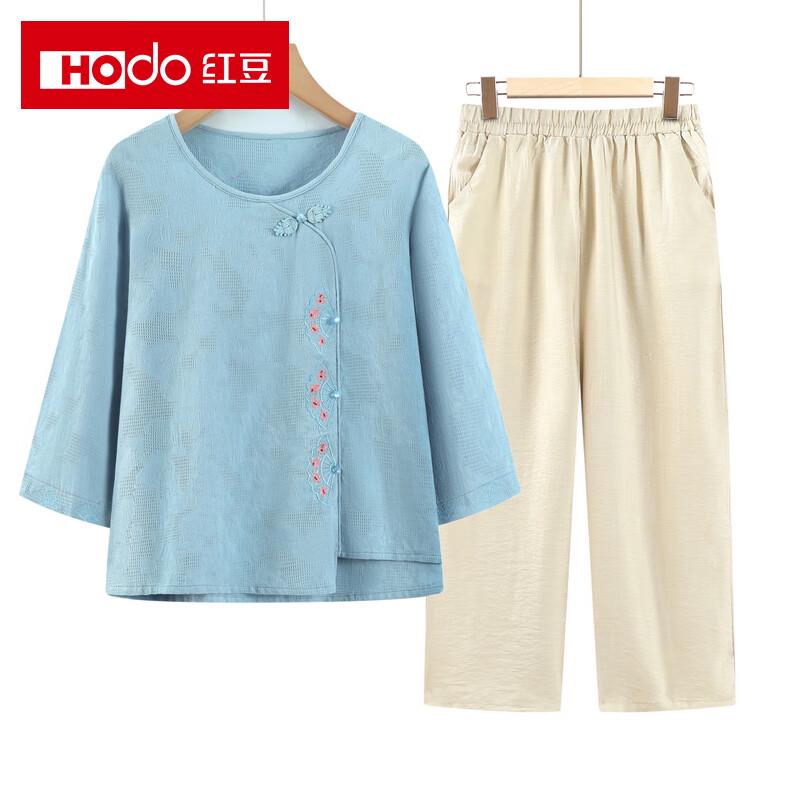 Elderly Women's Summer Cotton Linen Mid-Sleeve T-Shirt & Top Set
