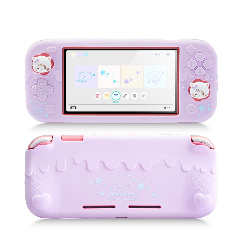 GeekShare Switch Lite Case, Full Protection for Switch Lite, Thin Silicone, Scratch-Resistant, Stain-Resistant, Compatible with Switch Lite, Cute, Shock-Resistant, Easy to Remove, Birthday Gift, Purple, Mikko - Kitten Mouss