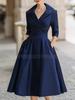 Elegant temperament waist thin dress long sleeves big swing solid color dress women