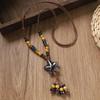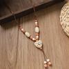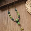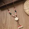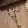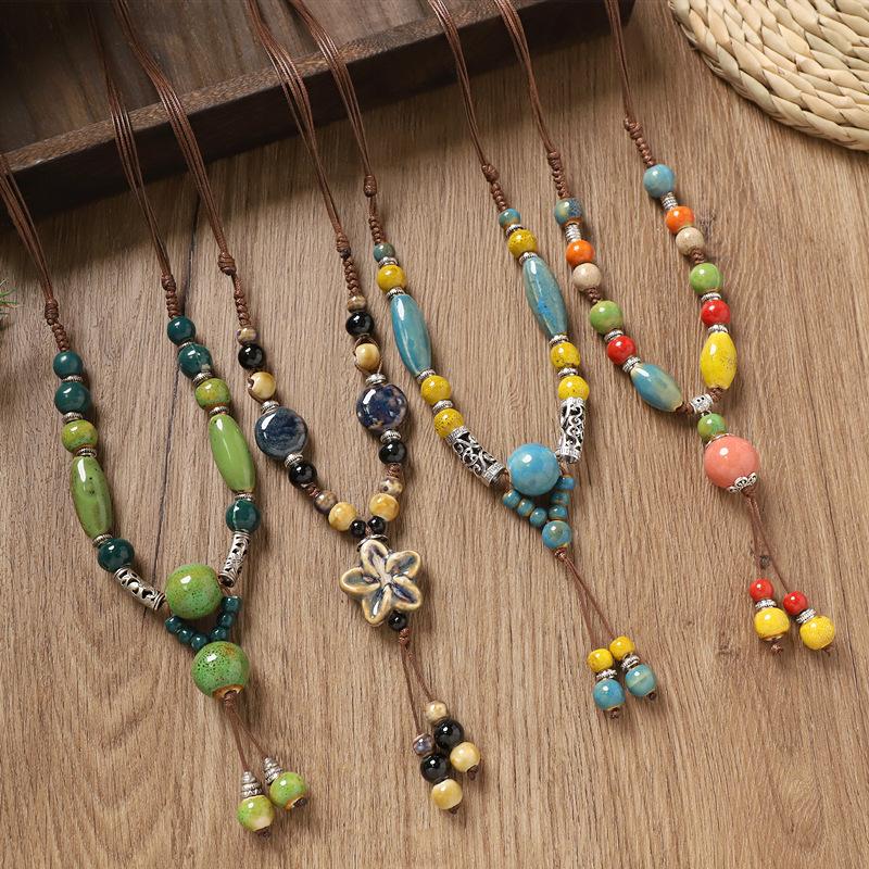 Retro Ceramic Beaded Necklace for Women, Handmade Long Sweater Chain, Ethnic Vintage Chinese Style Jewelry