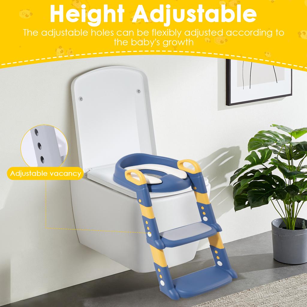 Potty Training Seat Ladder Comfortable Adjustable Height 2 in 1 Potty Training Toilet With Anti Slip Pad for Kids Boys Girls