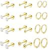 12-Pair Stainless Steel Earrings Set , Flat Back Studs, Small Size for Men Women Cartilage Earrings for Multiple Piercings