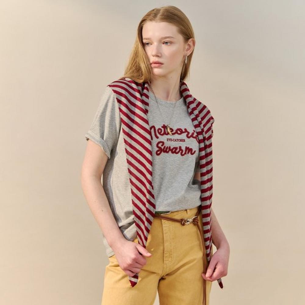 Çizgili Eşarp Setli Harf Baskılı Tişört, dikkat çekici üç boyutlu bir harf detayına sahip kısa kollu bir tişört.. Cesur bukle yazılarla birleşen sofistike renk paleti, eğlenceli ama sevimli bir atmosfer yaratıyor.. Eşlik eden çizgili şal, çeşitli styling seçenekleri için boyna hafifçe sarılabilir veya omuzlara dökülebilir.. Günlük bir moda ifadesi için kot pantolonlar, pamuklu pantolonlar veya eteklerle iyi gider.