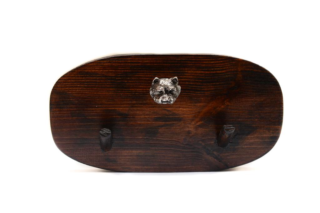 This wooden dog hanger is a handmade and unique accessory designed to add both functionality and elegance to an interior. The classic style is expressed in the combination of pine wood and the silver-plated, intricately crafted relief of the dog. The hanger can be used as a traditional clothes hanger, but also as a hanger for a leash and other dog accessories, a display of medals won at a dog show, or as a key hook. Its versatile use speaks for itself - it will be a truly practical gift for any dog lover! Dimensions: 10x20 cmHanger material: pine woodOrnament material: Zinc-aluminium alloy (ZnAl), silver-plated. The product is subjected to a patination process.