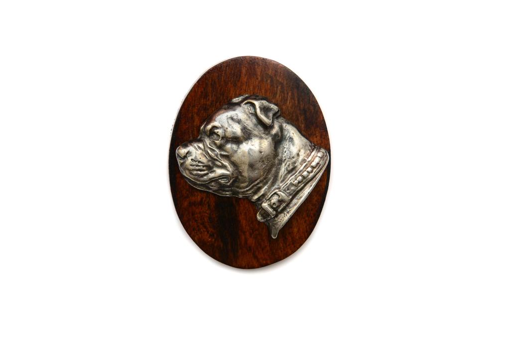 Use this stylish and elegant clip-on brooch to display your dog show entry number. This pin is handmade from wood and decorated with a beautiful silver-plated dog's head corresponding to your pet's breed. It has a safety pin on the back, which you can easily and securely pin the accessory to your clothing, and a clip to grab the number. The clip is tucked away so that you can confidently use the brooch as a decoration even outside of shows. The product is handmade in a small workshop in Poland. Give yourself or a loved one a bit of luxury in the form of such a unique handicraft.Dimensions: 5x7 cmBase material: WoodOrnament material: Zinc-aluminium alloy (ZnAl), silver-plated. The product is subjected to a patination process.