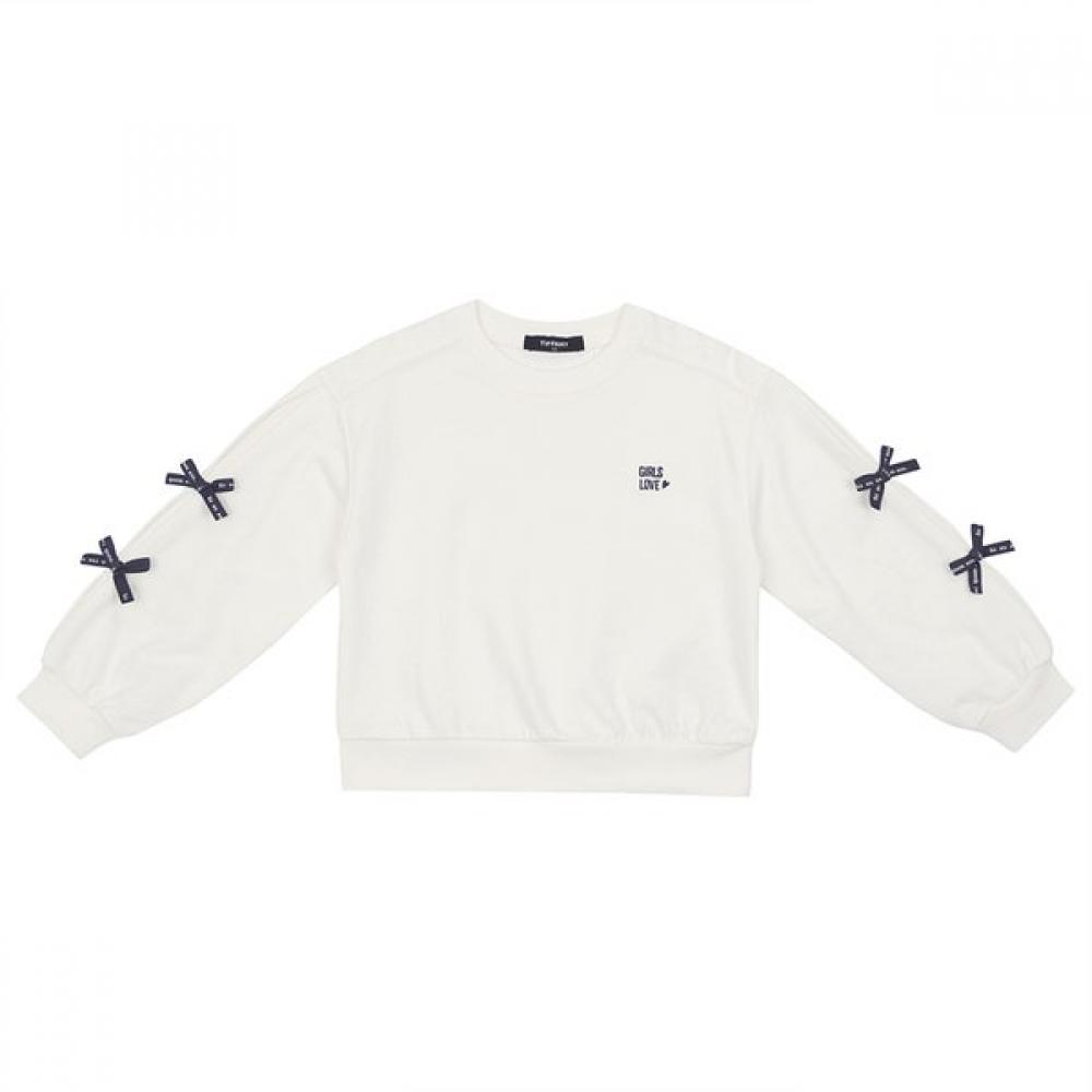 The Ivory Decorative Ribbon Sweatshirt is made from a mini-jelly fabric with a lovely mood, providing a lightweight and comfortable fit. The cute ribbon detail on the sleeves adds to the charm, making it easy to match with various bottoms, ideal for daily looks. With a simple design that highlights detailed touches, it completes a stylish outfit with flair.