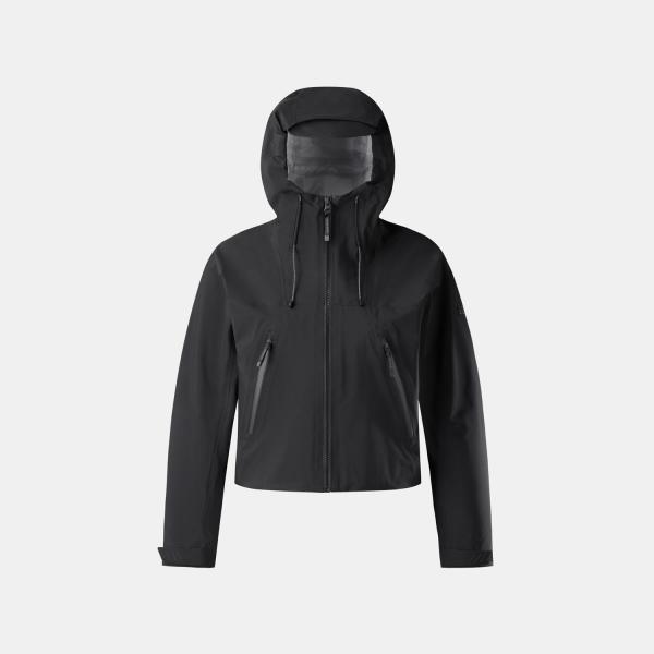 The KOLON SPORT Women's 3L Crop Waterproof Jacket Aero Chaser JKJJS25122BLK is an outerwear that combines functionality and style. It boasts a trendy silhouette with a cropped style design and is equipped with waterproof features, allowing for safe wear in various weather conditions. The color is Charcoal, and various size options are available.